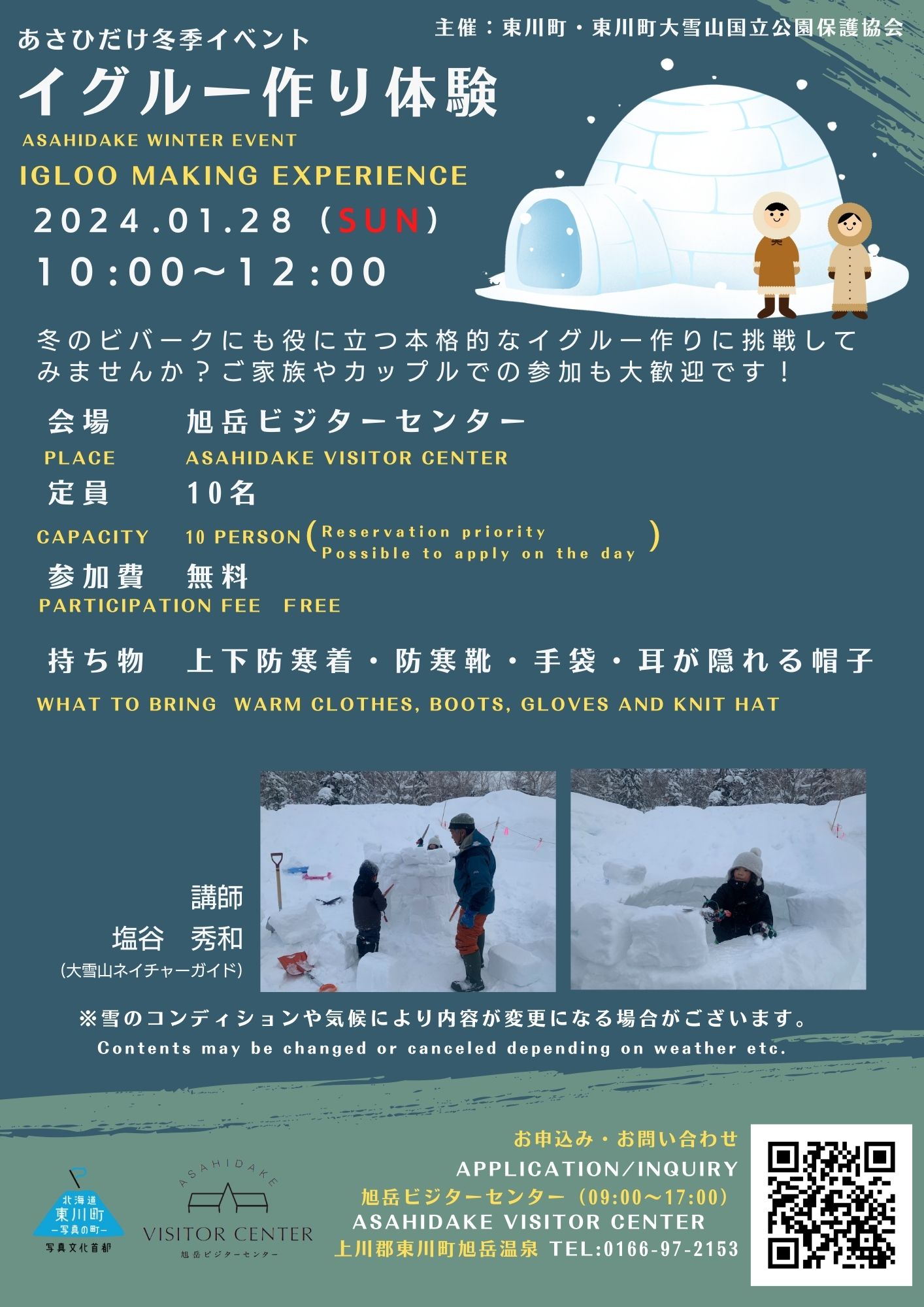 冬のビバークにも役に立つ本格的なイグルー作りに挑戦してみませんか?ご家族やカップルでのご参加も大歓迎です。