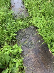 ・木道の上にあるヒグマのふんを確認しました。(約1~2日経過したもの)