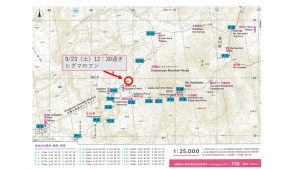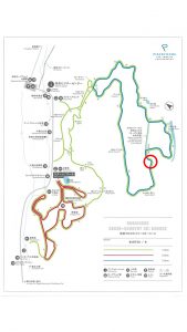 ・野営場付近のコース上赤丸付近に、ヒグマと思われるフンが発見されました。