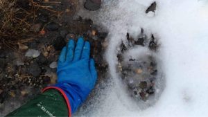 ・ヒグマと思われる足跡があったと情報をいただきました。(来館者より情報提供)