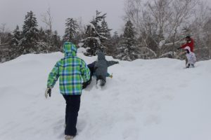 この日は、ガイドオフィス風の鳥羽晃一さんを招いて「雪の運動会」が開催されました。