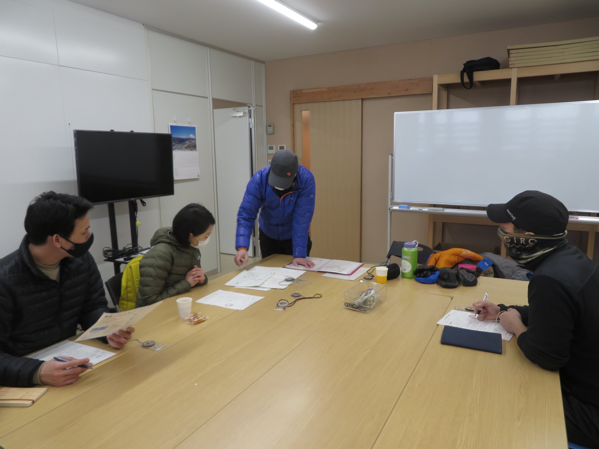 本格的な宝さがしの前に室内でコンパスの種類、部品の名前、使い方などを教えていただきました。