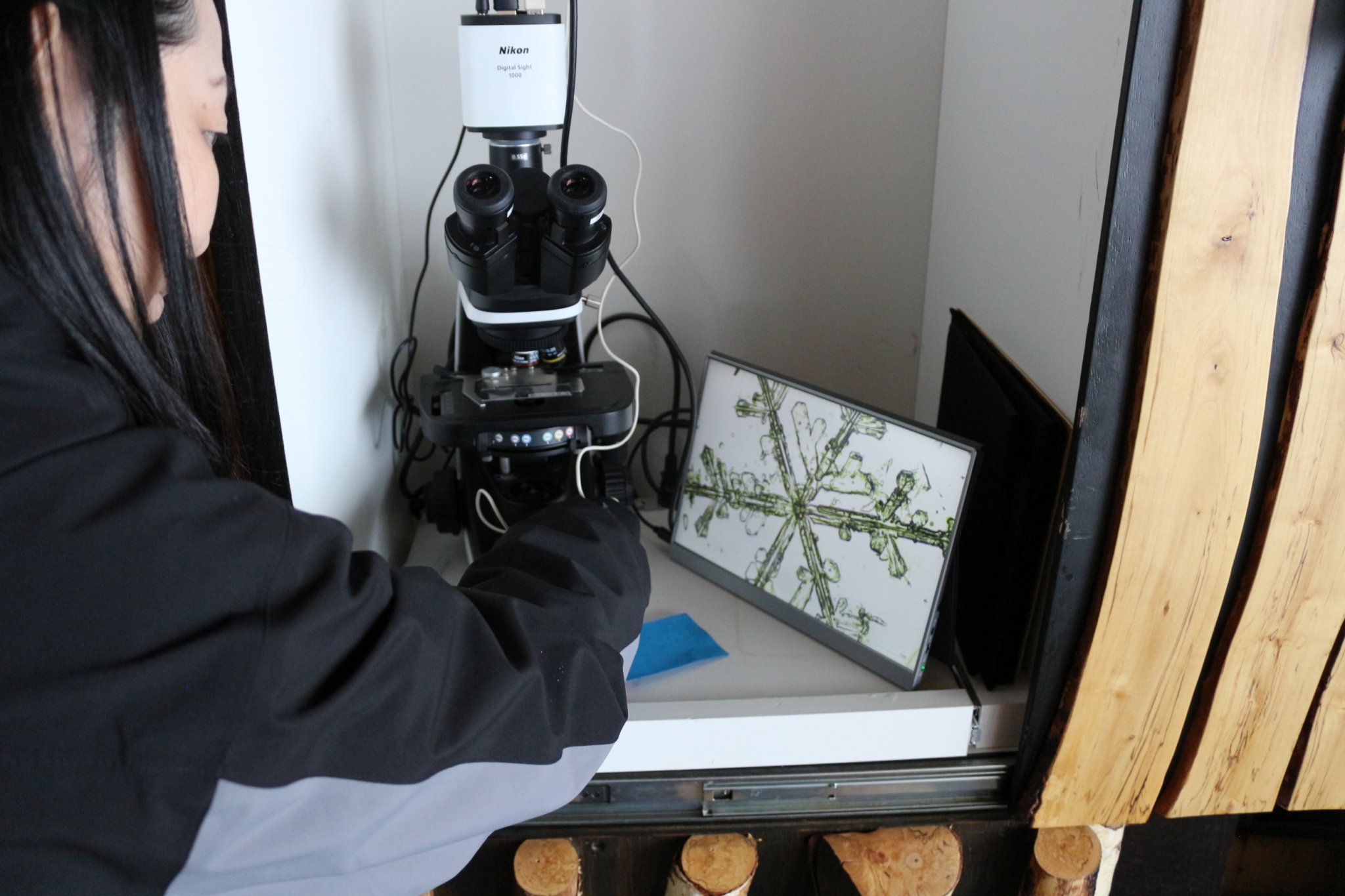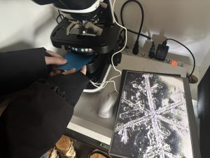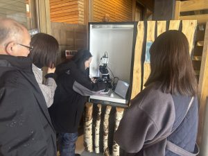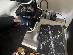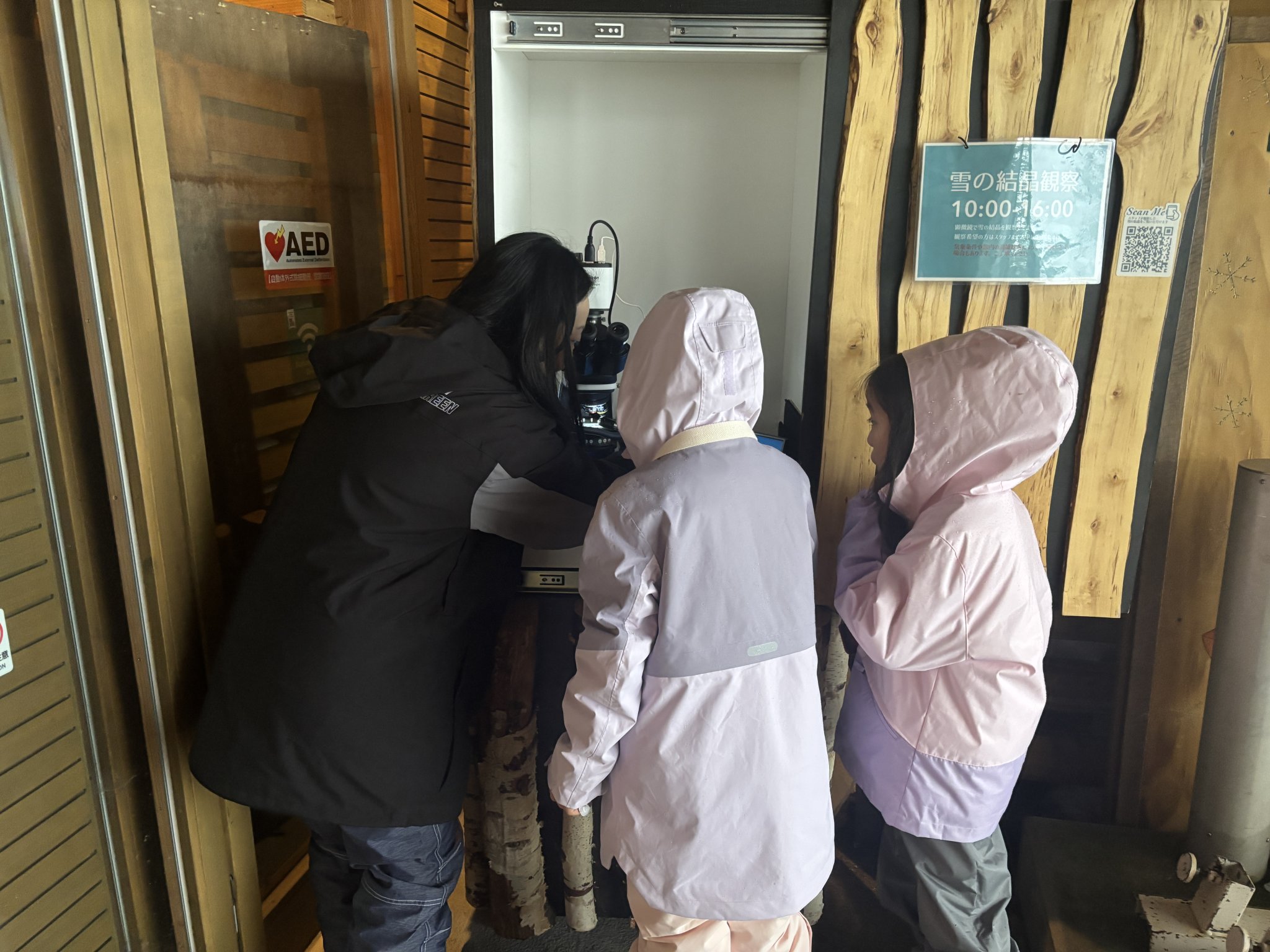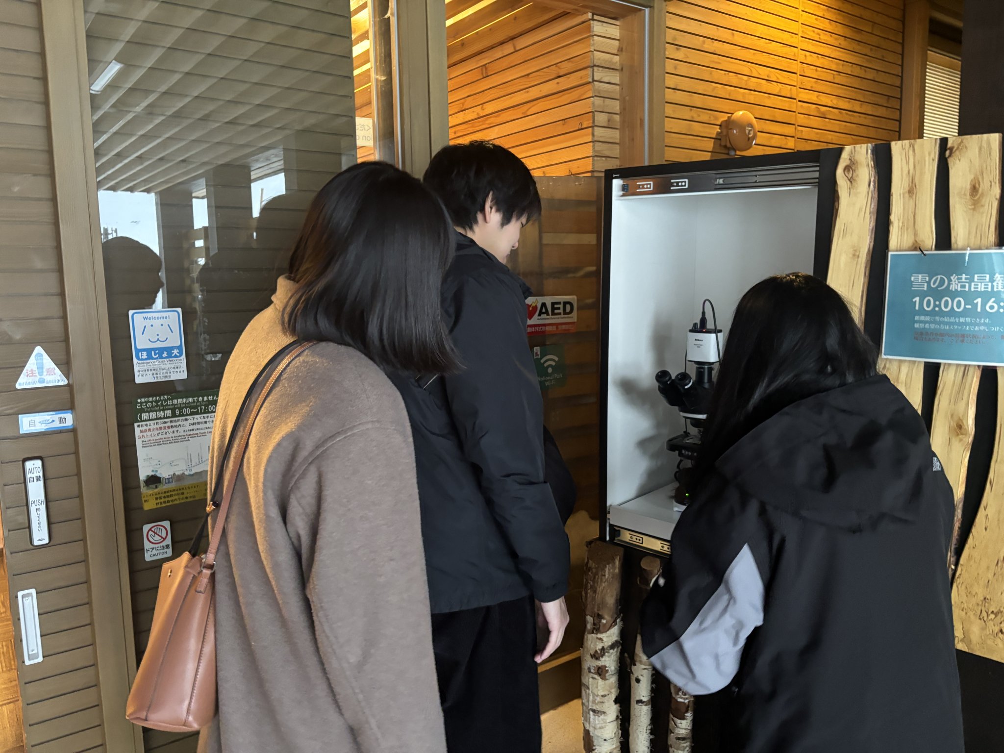 モニターもお持ちいただき、後ろでお待ちの方にも雪の結晶を見られるようにしてくださいました。