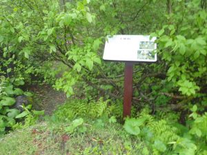 ↓山麓駅前の駐車場脇に、チシマザクラ植栽地をしめす看板があります。