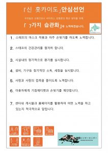 旭岳ビジターセンターにも、新型コロナウイルス感染症の拡大防止のため、「 7つの習慣化 」に取り組みます!