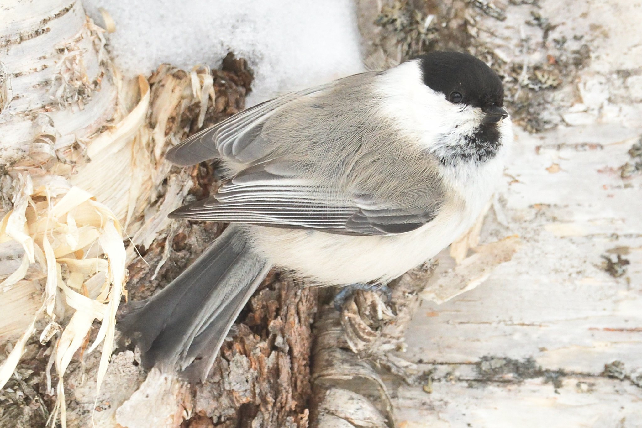 旭岳温泉街では厳冬期でもキツツキやカラ類などの野鳥が観察できます。