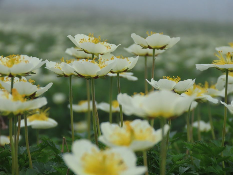 真っ白な視界の中で見るチングルマ畑も、幻想的で美しいです。