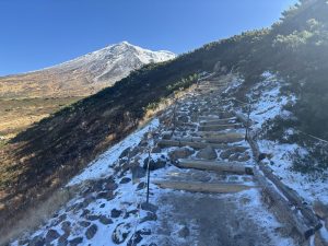 8合目から上が、ぐっと積雪量が多いように見えました。