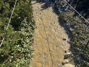 日陰に本当にさらっと雪と、ぬかるみが多いです。