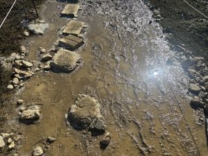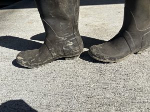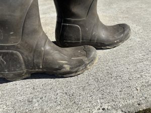 私は長靴で木道や飛び石を使って歩きましたが、こんな感じで汚れました。