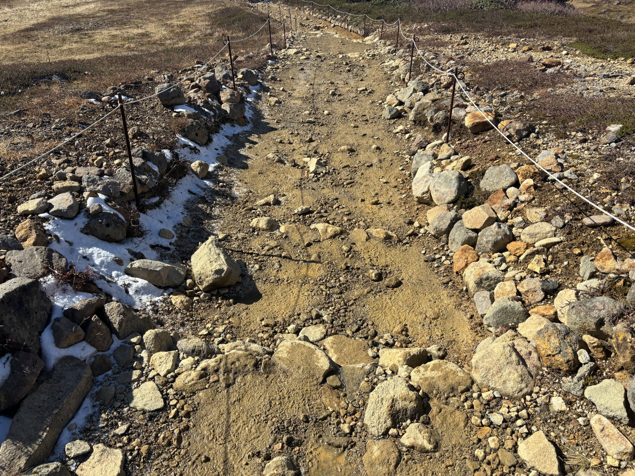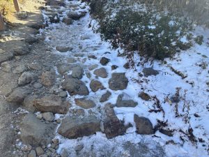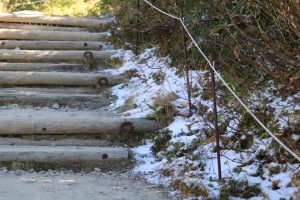 日陰は雪が溶けずらいので、ほんのうっすら残っている場所もありましたが雪で滑る程ではありませんでした。