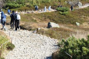 写真のように木道や飛び石が置いてある場所は、靴を汚さず歩けますが、一部木道等ない場所もあるので