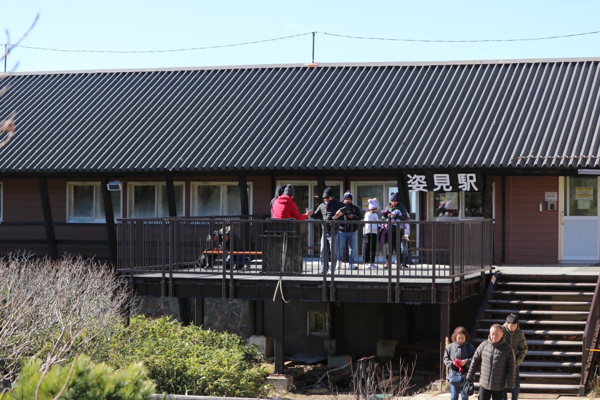 雲ひとつない晴天で、姿見園地内を歩かれてる観光客の方がたくさんおられます。