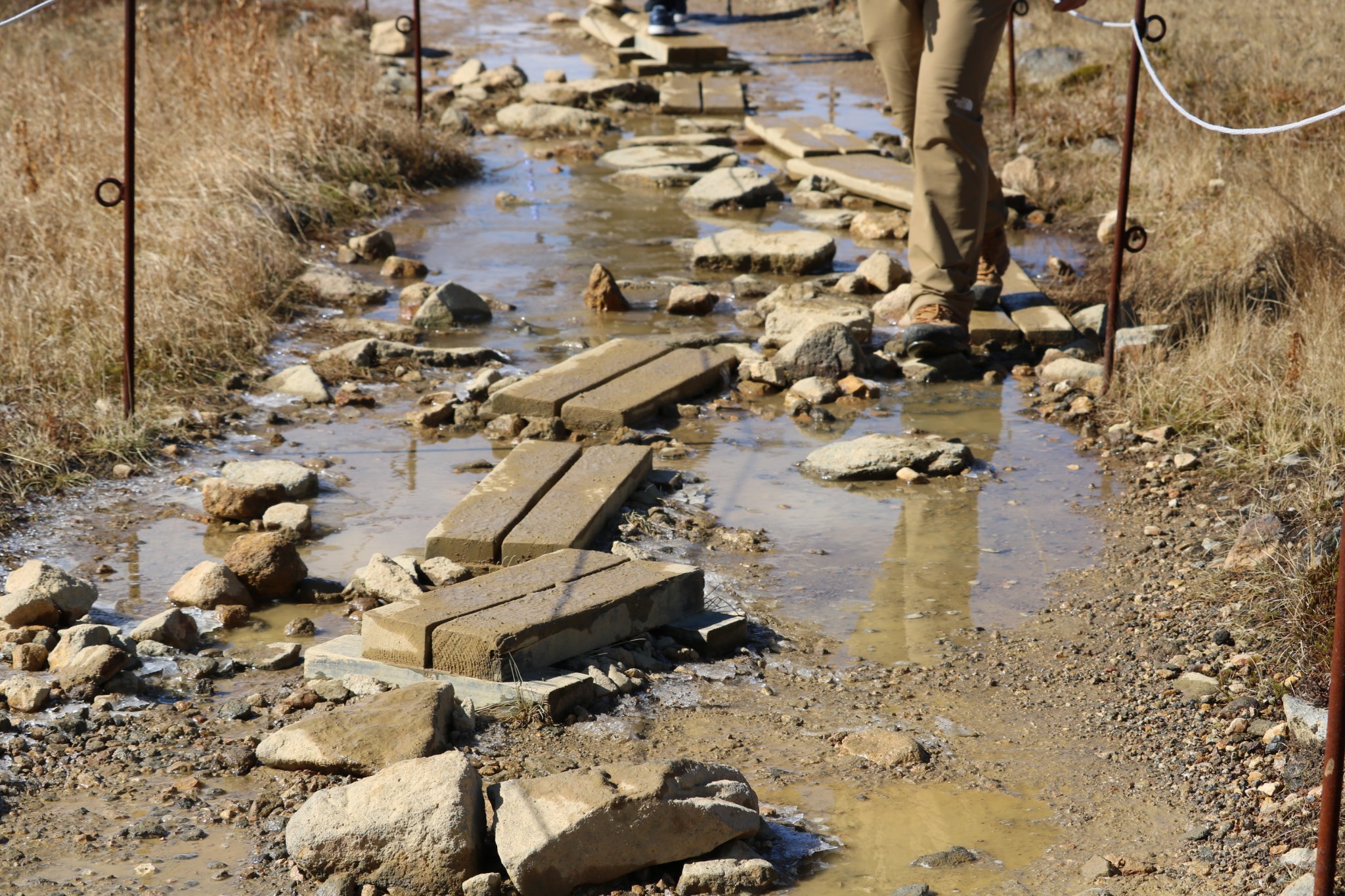 場所によってぬかるみ、水溜まりあり。飛び石や木道のない場所もあります。