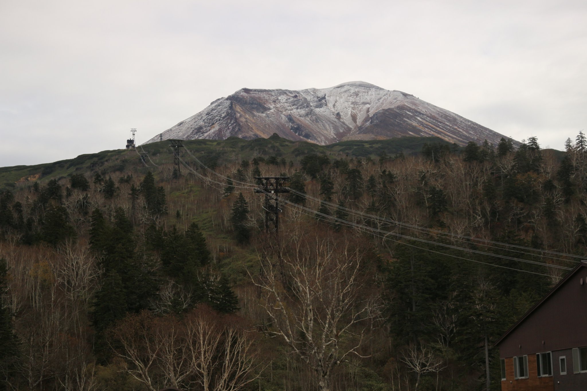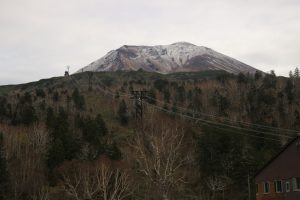 旭岳山頂付近には雪が積もっており、季節が進んでいることを感じます。