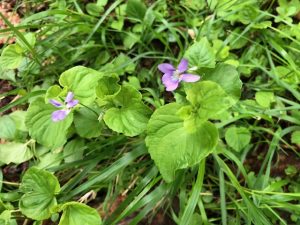 エゾクロクモソウ(葉)、タチツボスミレ、オオタチツボスミレ(距が白い)