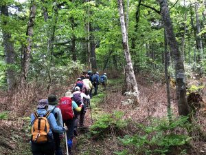 登山道は一部崩れかけている所がありますので、みなさんと慎重に進みます。