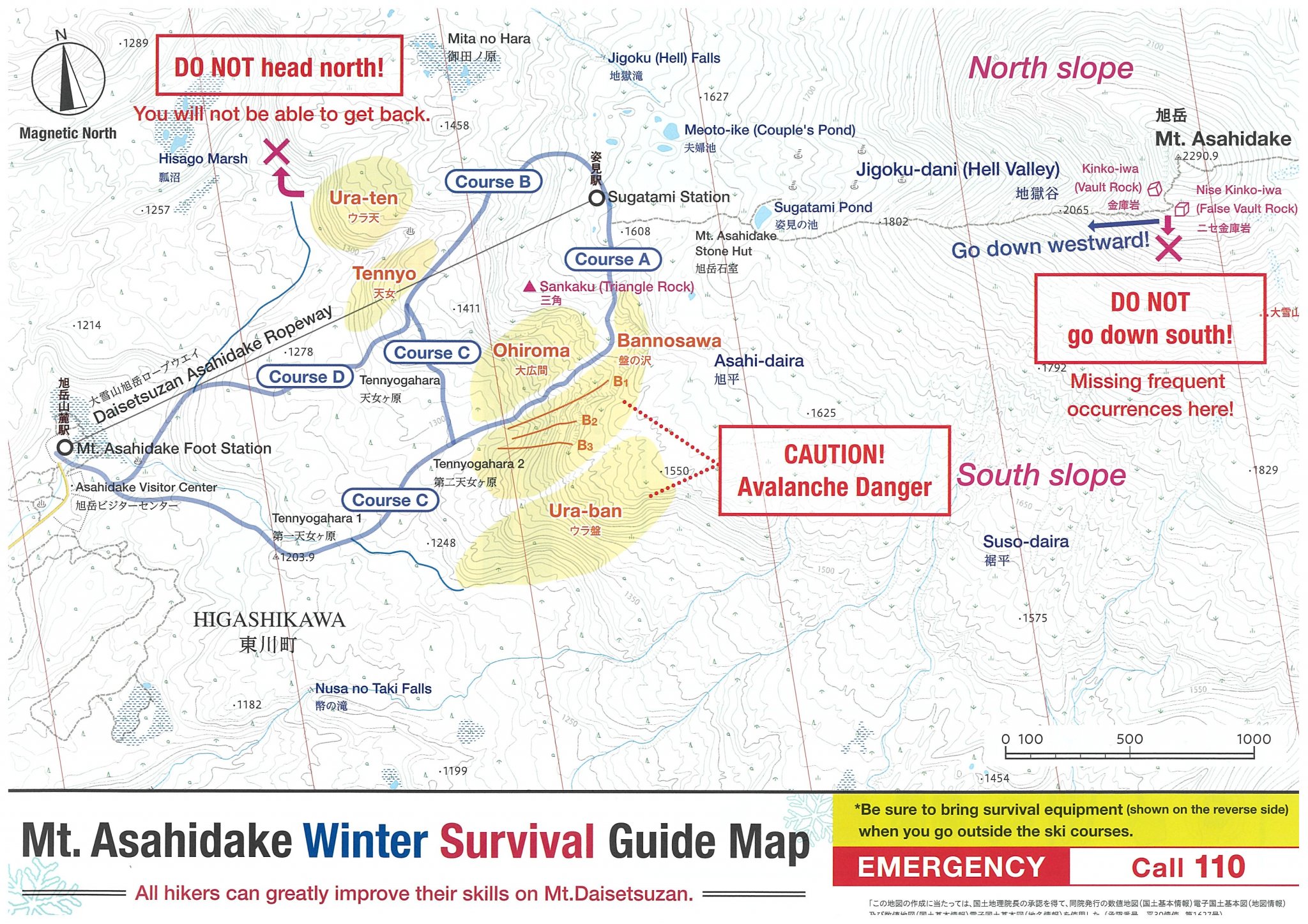 视线不良时请勿远离车站!救援不会立即到来。在低温环境中遇险可能危及生命。姿见站周边没有道路和标识。请勿轻视雪山。