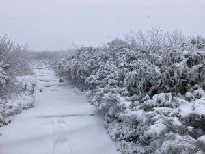 Snowshoes cannot be used yet because there isn’t enough snow accumulation. They damage the hiking trails.